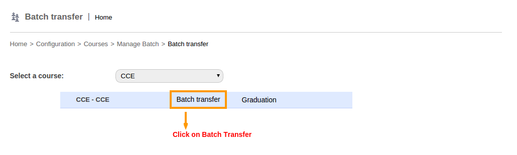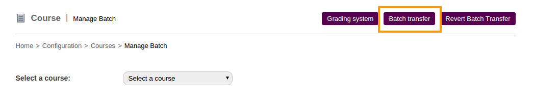 1. To start the transfer, go to Settings > Manage Course/Batch > Manage Batch. Click on Batch Transfer
