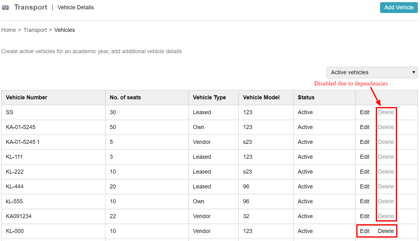 At the top of your dashboard, click the module access icon > Administration > Transport > Vehicles to open the Vehicle Details page. Click Edit beside the vehicle to edit the vehicle details, if you want to edit the details of a vehicle. ...