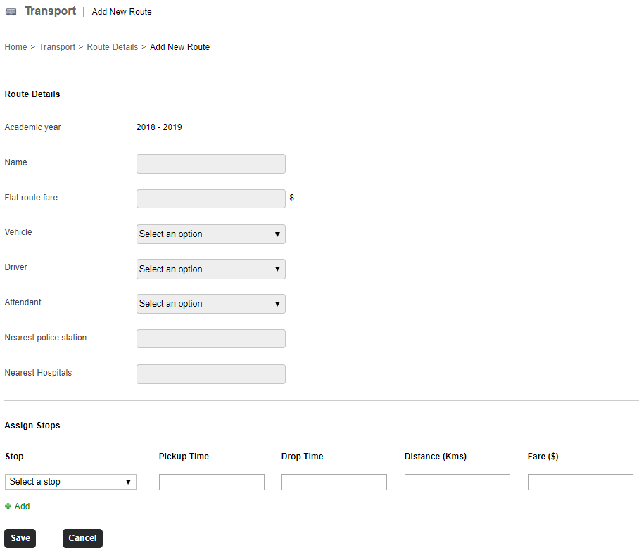 Select the Vehicle, Driver and Attendant for that route in Vehicle, Driver and Attendant field respectively.